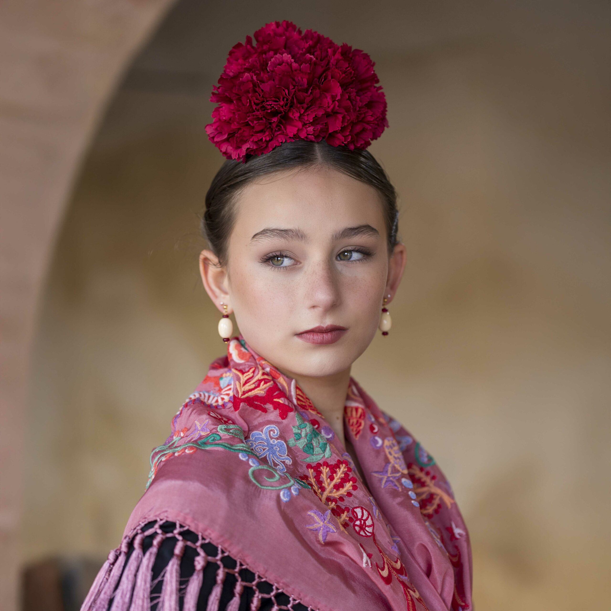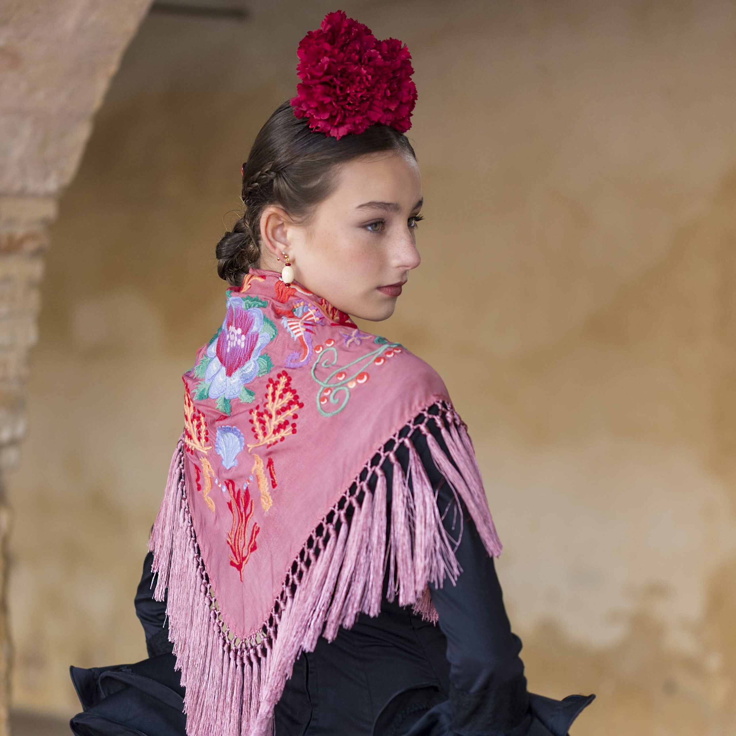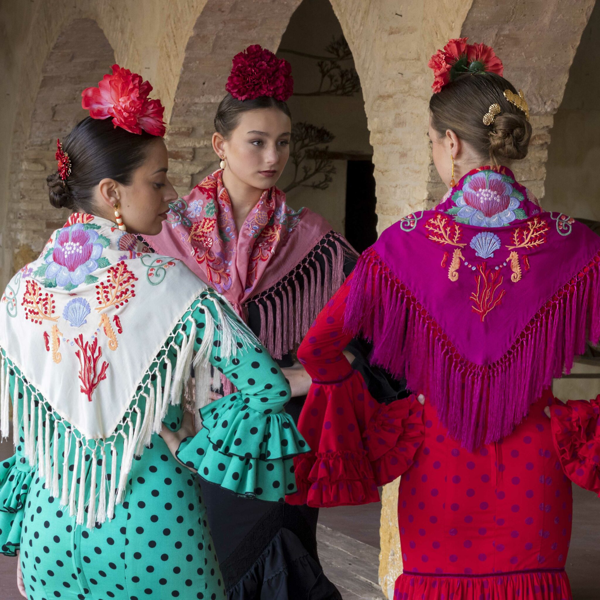 Además, explora nuestra colección de complementos, como pendientes y peinecillos, diseñados y fabricados por nuestra marca aquí en el taller. ¡Atrévete a lucir única y elegante en la próxima feria con el Mantoncillo Mar DW !