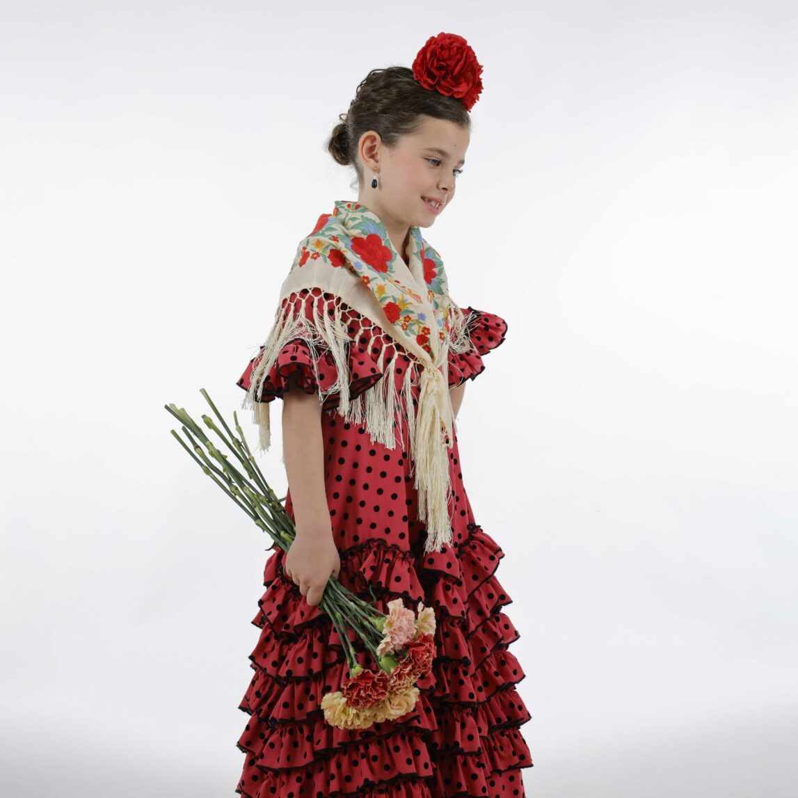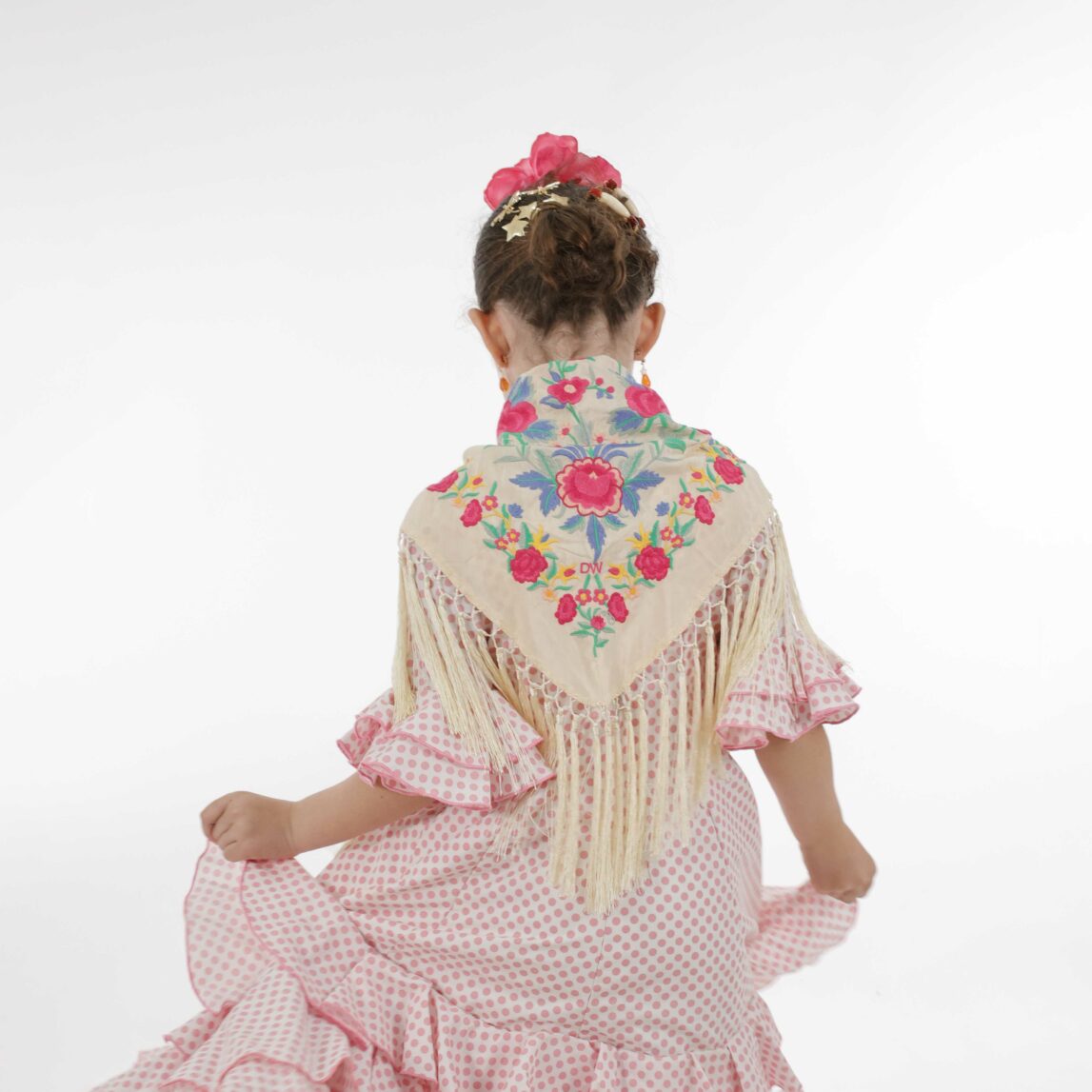 El mantón para traje de flamenca es un imprescindible en la moda andaluza, y forma parte esencial del atuendo flamenco de alta calidad. En nuestra región, vestirse adecuadamente para ferias y eventos es una tradición que valoramos profundamente, y este mantoncillo es perfecto para que tu hija se una a esta tradición con elegancia.