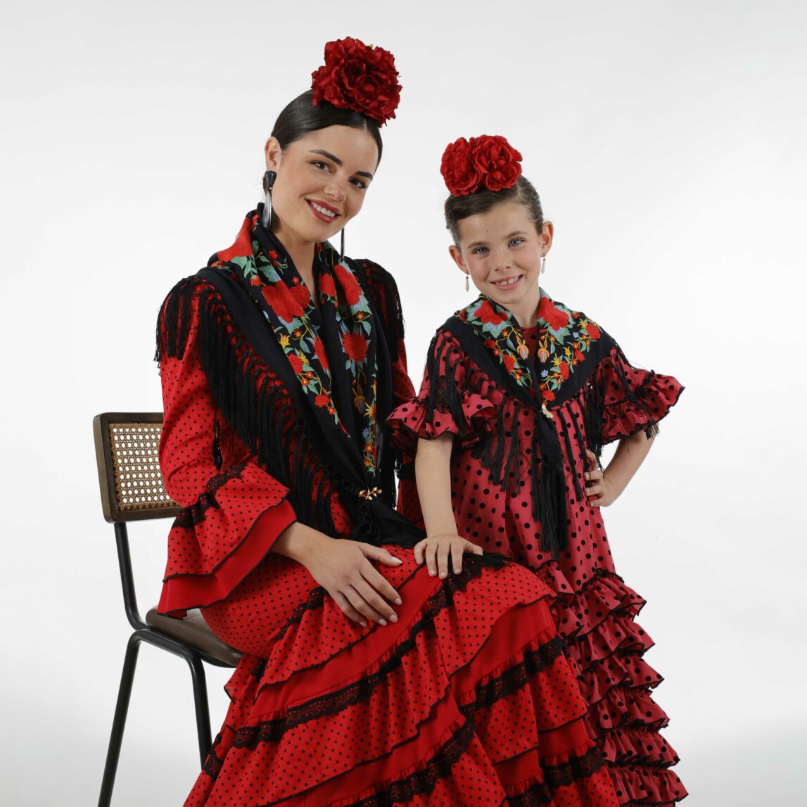 Además, si te encanta ir a conjunto con tu hija, este mantoncillo se puede comparar con el de mamá, creando un look flamenco coordinado y lleno de estilo. Su diseño incluye fleco de borlón corto, con un nudo sencillo, que está muy en tendencia este año en pasarelas como SIMOF y We Love Flamenco. Este tipo de fleco es elegante, moderno y le da un toque único al mantoncillo, haciendo que tu niña luzca espectacular.