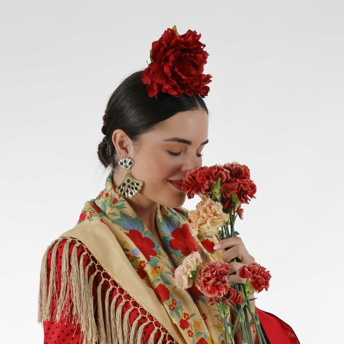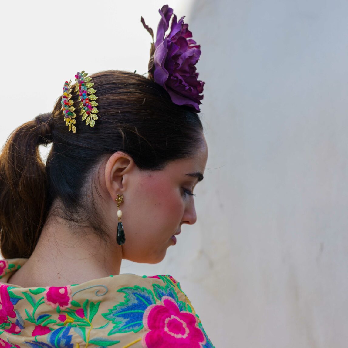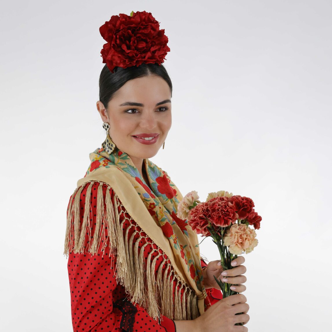 No olvides completar tu look con nuestros pendientes y peinecillos, diseñados y fabricados en nuestro taller. ¡Luce única y deslumbra en la Feria con el Mantoncillo Rosario DW!