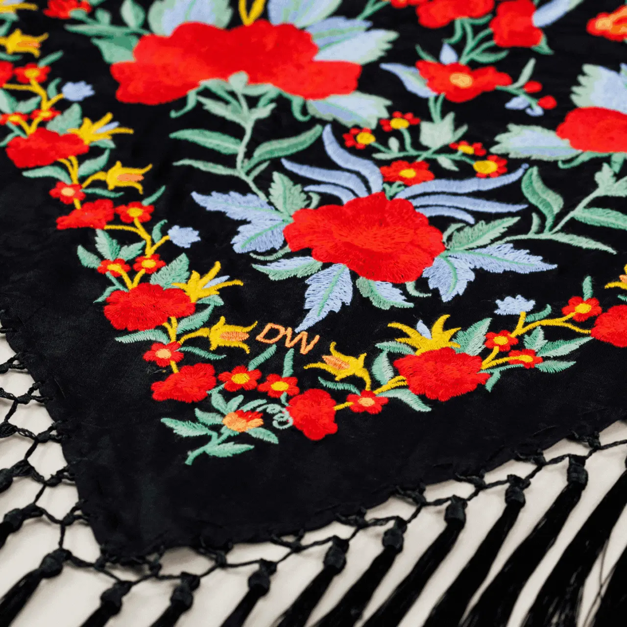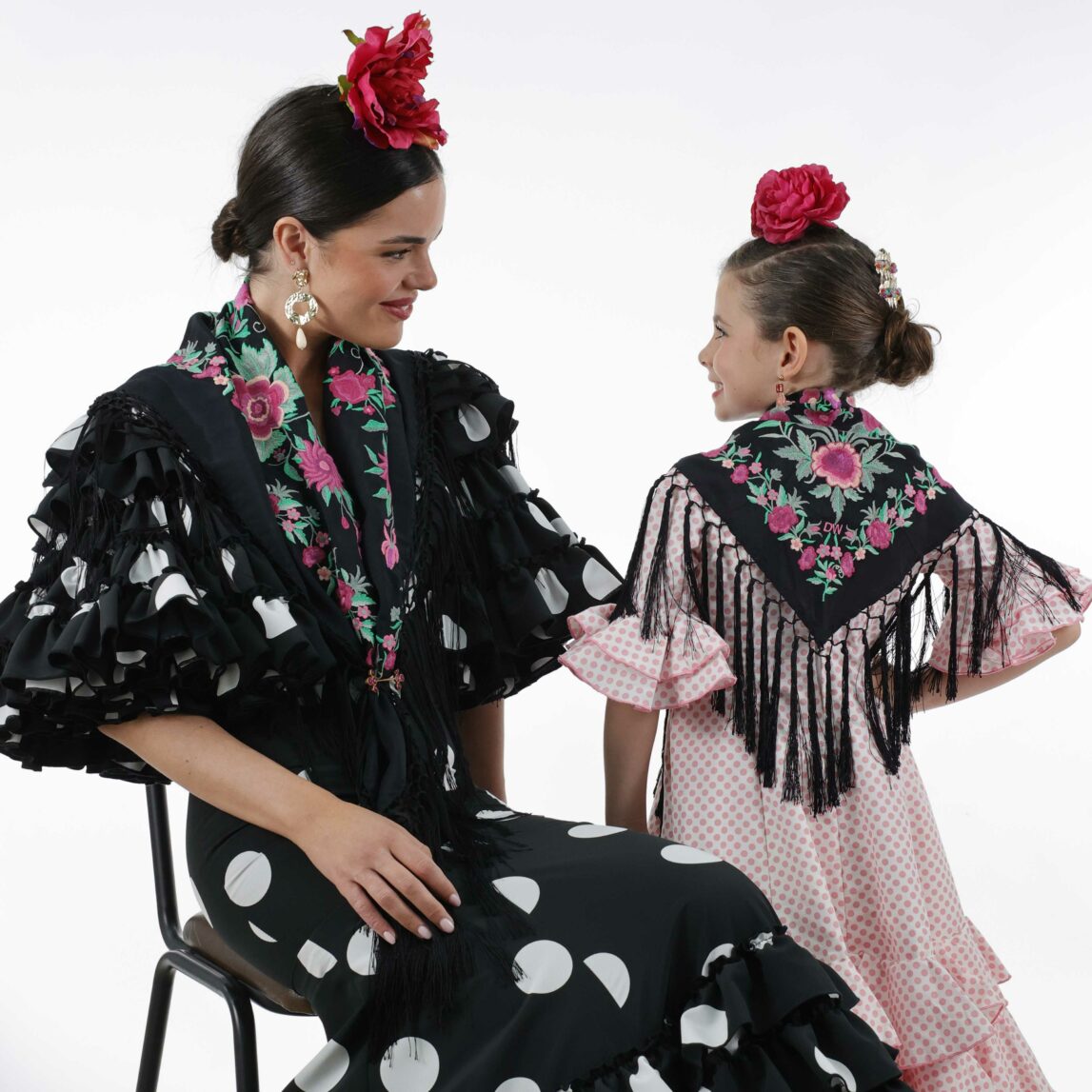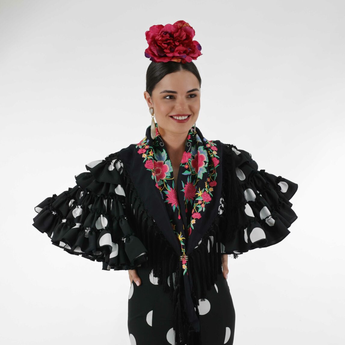 Si buscas un mantón con personalidad, diseño exclusivo y tradición, el Mantoncillo Rosario  DW negro es para ti. Forma parte de nuestra Colección de Feria 2025 y está disponible en unidades limitadas, lo que lo convierte en una auténtica joya.