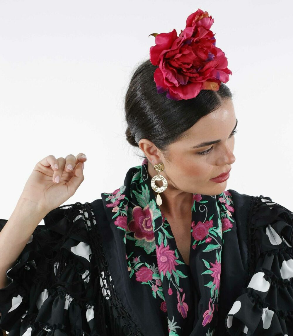 Nos enamoramos tanto de este modelo que hemos decidido ofrecerlo en tres versiones según el color predominante: fucsia, rojo y buganvilla. Tres opciones, tres estilos, pero un mismo impacto visual que hará que tu look flamenco brille con luz propia.