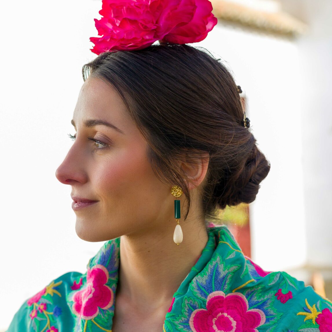 No olvides completar tu look con nuestros pendientes y peinecillos, diseñados y fabricados en nuestro taller. ¡Luce única y deslumbra en la Feria con el Mantoncillo Rosario DW!