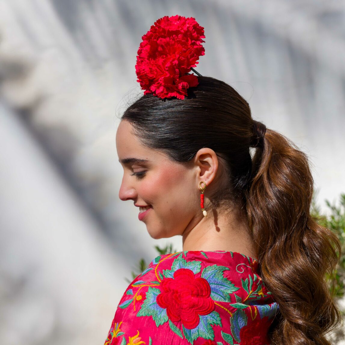 Nos enamoramos tanto de este modelo que hemos decidido ofrecerlo en tres versiones según el color predominante: fucsia, rojo y buganvilla. Tres opciones, tres estilos, pero un mismo impacto visual que hará que tu look flamenco brille con luz propia.