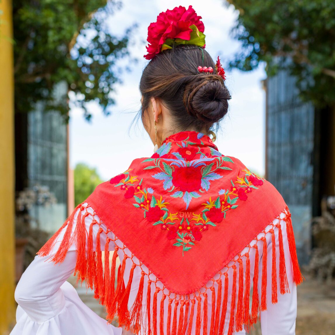 Si buscas un mantón con personalidad, diseño exclusivo y tradición, el Mantoncillo Rosario  DW naranja es para ti. Forma parte de nuestra Colección de Feria 2025 y está disponible en unidades limitadas, lo que lo convierte en una auténtica joya.