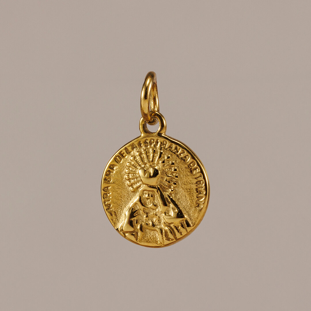 Medalla de la Esperanza de Triana en acero inoxidable dorado. Waterproof e hipoalergénica. Ideal para combinar con nuestras cadenas Caribe o Pilar.