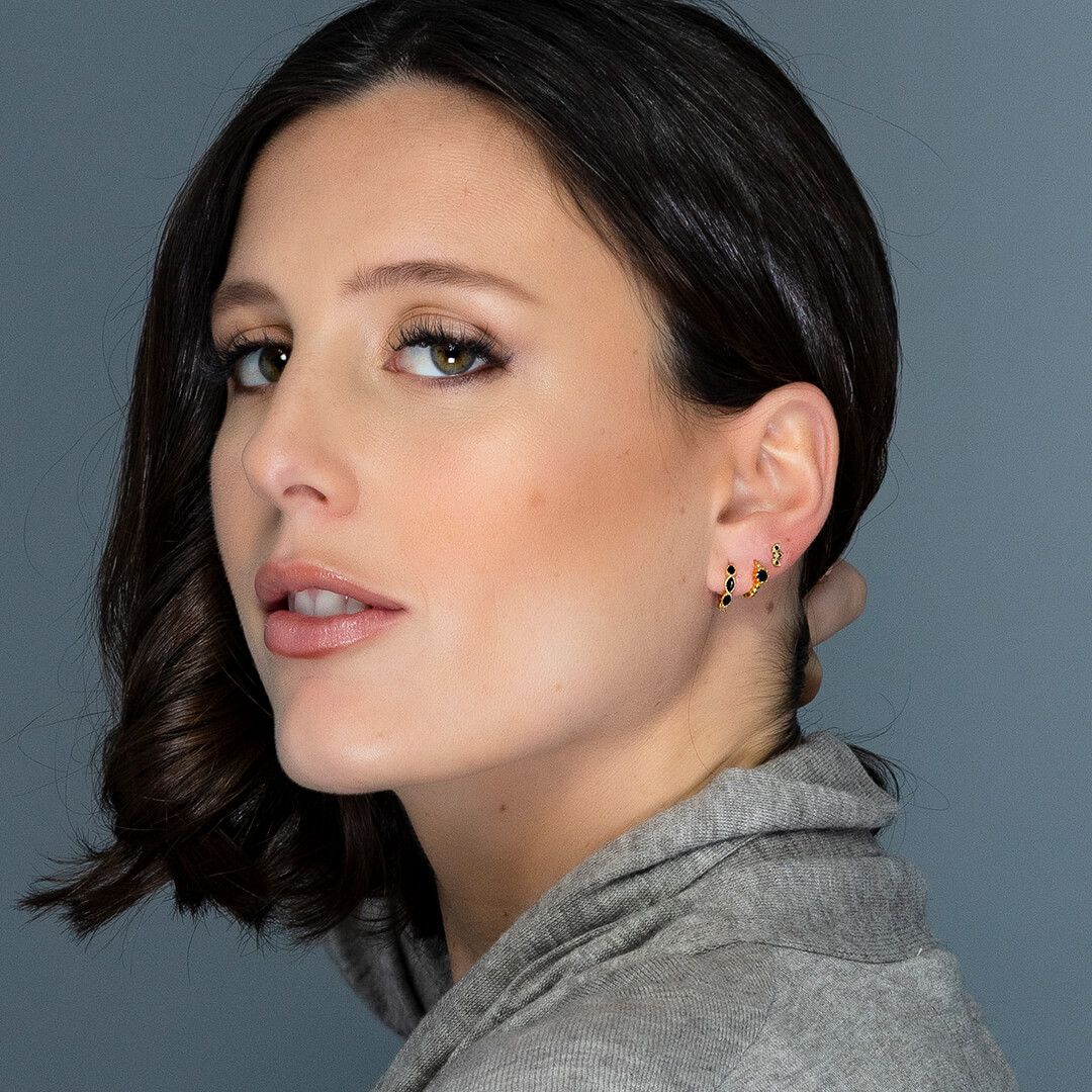 El diseño realza su circonita blanca o negra, que aporta un destello sutil de luz al rostro. Su estilo minimalista y versátillo convierte en el complemento ideal tanto para el día a día como para ocasiones más especiales.