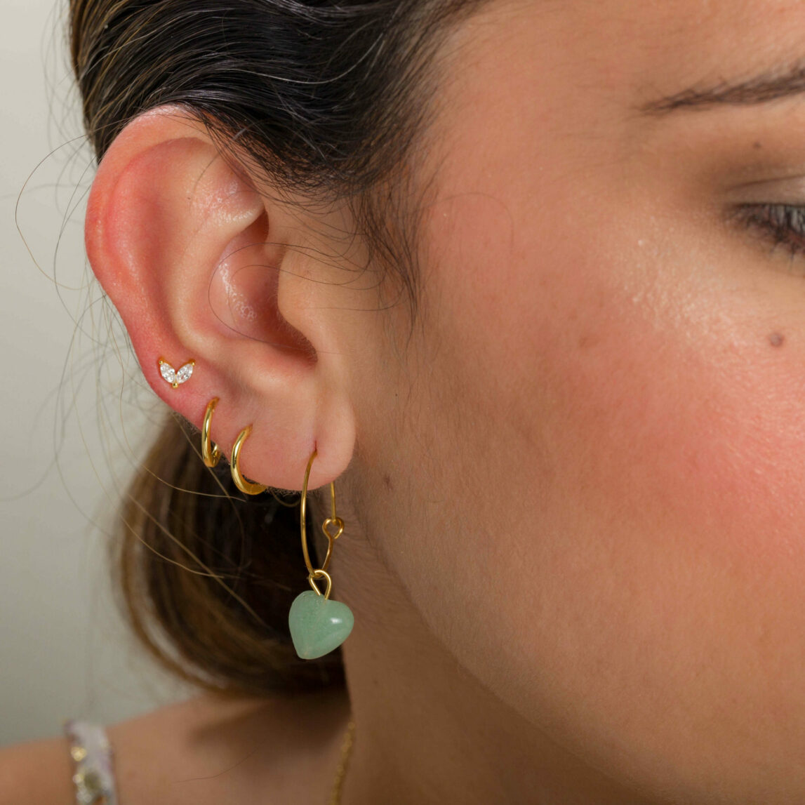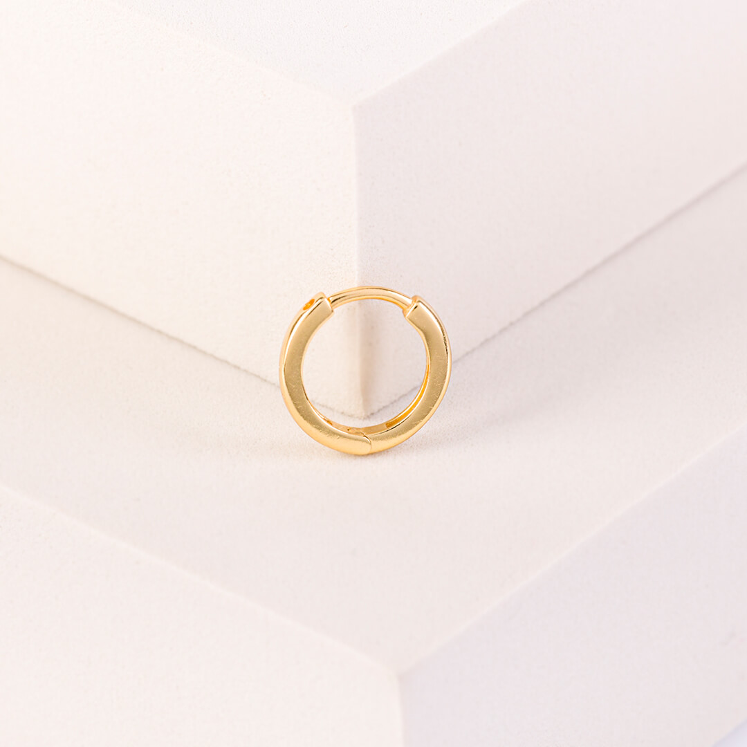 Nuestro Mini Aro Cala es también ideal para niñas, como pendientes principales. El diseño de este arito es completamente cerrado, muy cómodo a la hora de ponerlo y como no te pincha podrás llevarlo siempre puesto. Está fabricado en plata de ley 925 con un baño de oro, materiales minerales muy respetuoso con las pieles. Este material es perfecto para personas con alergias o irritaciones.