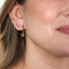 Si buscas inspiración para combinar el Mini Aro Fígaro, te sugerimos una opción infalible. Empieza con el Mini Aro Fígaro en el primer agujero, continúa con el Mini Aro Greta y remata la combinación con otro Mini Pendiente Sabina en otro agujero. Esta mezcla te destacará con un estilo fresco y moderno.