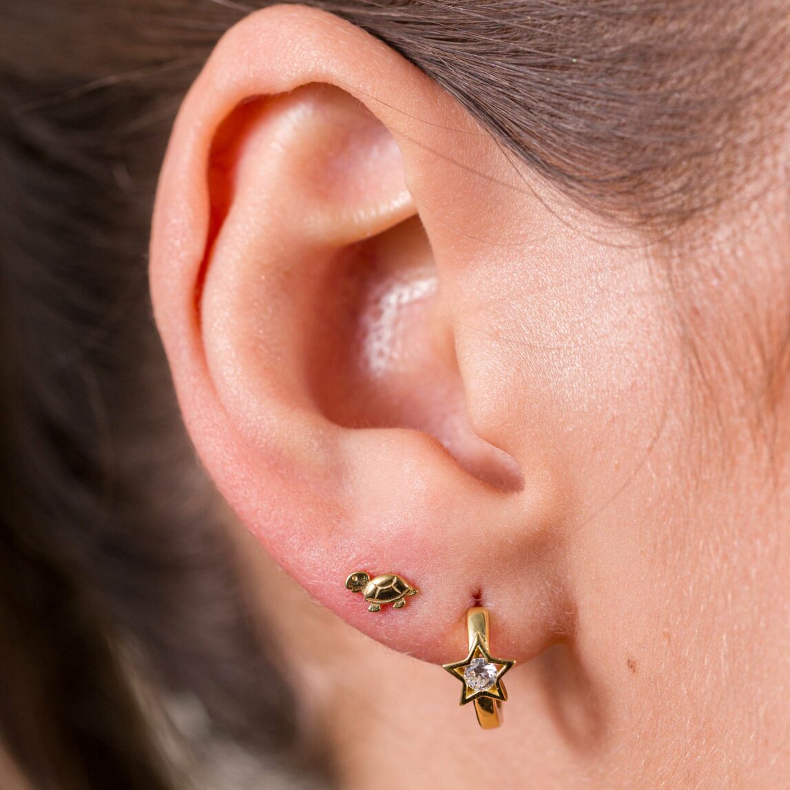Nuestro piercing de oreja reúne a la perfección todo lo que un mini arito debe tener: brillo y sencillez. Es un básico que pega con todo y podrás combinar genial con el resto de mini pendientes y piercings para el lóbulo de Darwin.