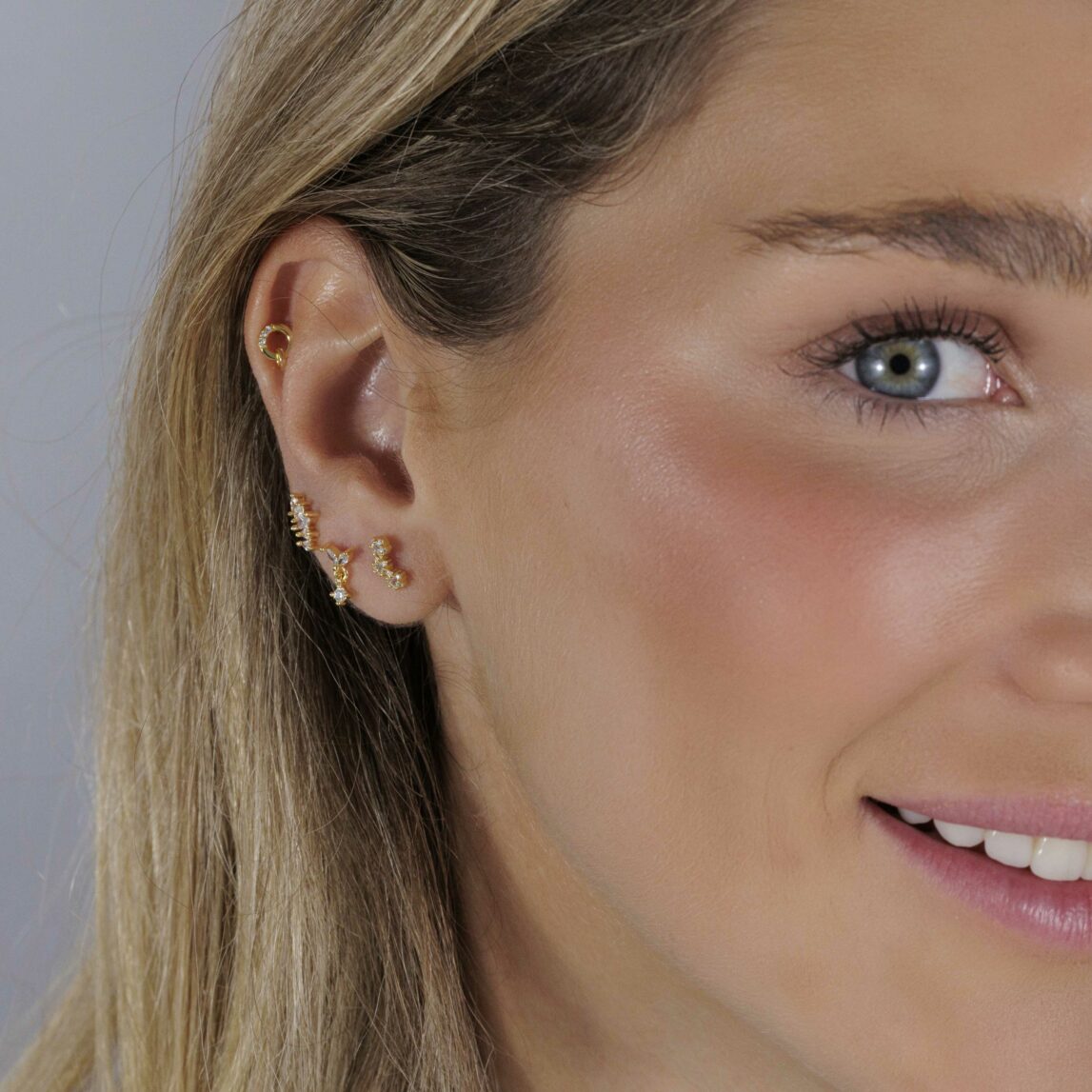 El Mini Pendiente Casiopea: un toque de estrella para tu look. Este diseño simula un trepador que sube elegantemente por tu oreja.