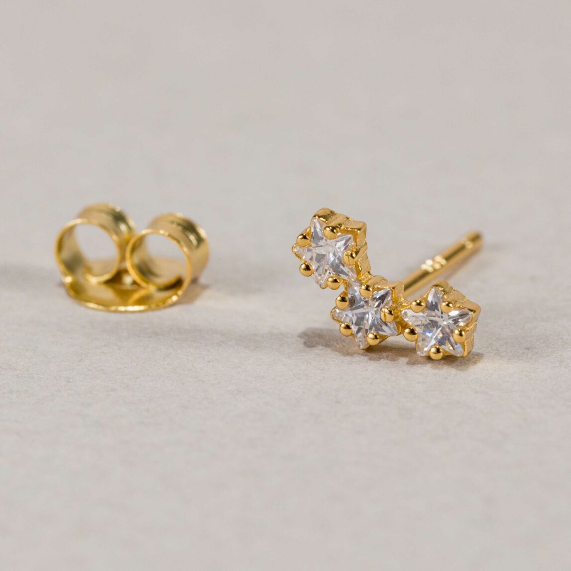 Fabricado en Plata de Ley 925 y disponible en dos acabados —oro de 18 quilates y plata— este pendiente es tan versátil como elegante. Las circonitas blancas aportan ese toque clásico y atemporal que combina con cualquier estilo, mientras que el diseño en forma de constelación le da un aire moderno y chic. Además, el cierre de mariposa asegura que sean cómodos de llevar y muy fáciles de colocar.
