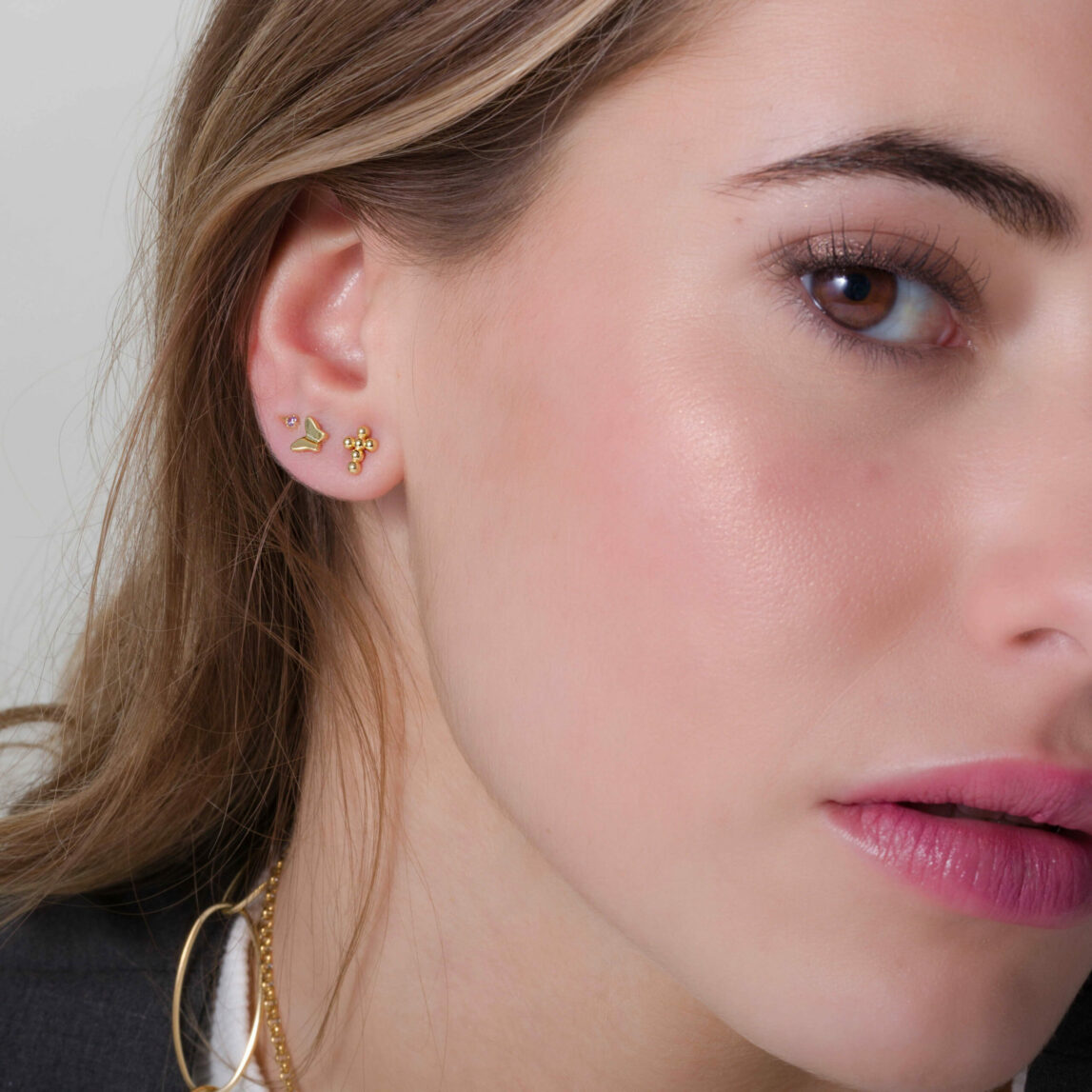 Las mariposas tienen un significado muy especial: inmortalidad, renacimiento y resurrección. Por eso esta joya no podía faltar en la colección de mini pendientes de Darwin.