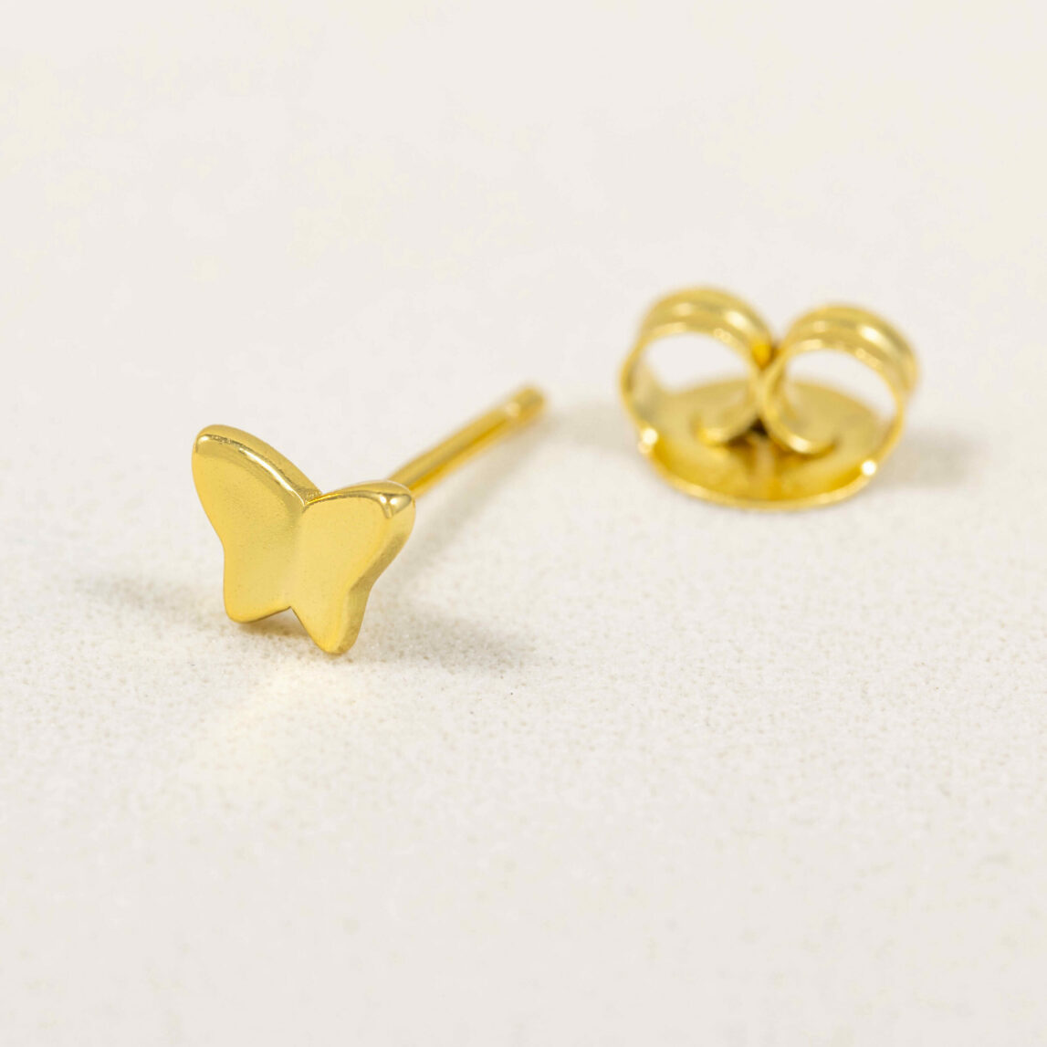 El Mini Pendiente Mariposa Lisa está fabricado en plata de ley bañado en oro.