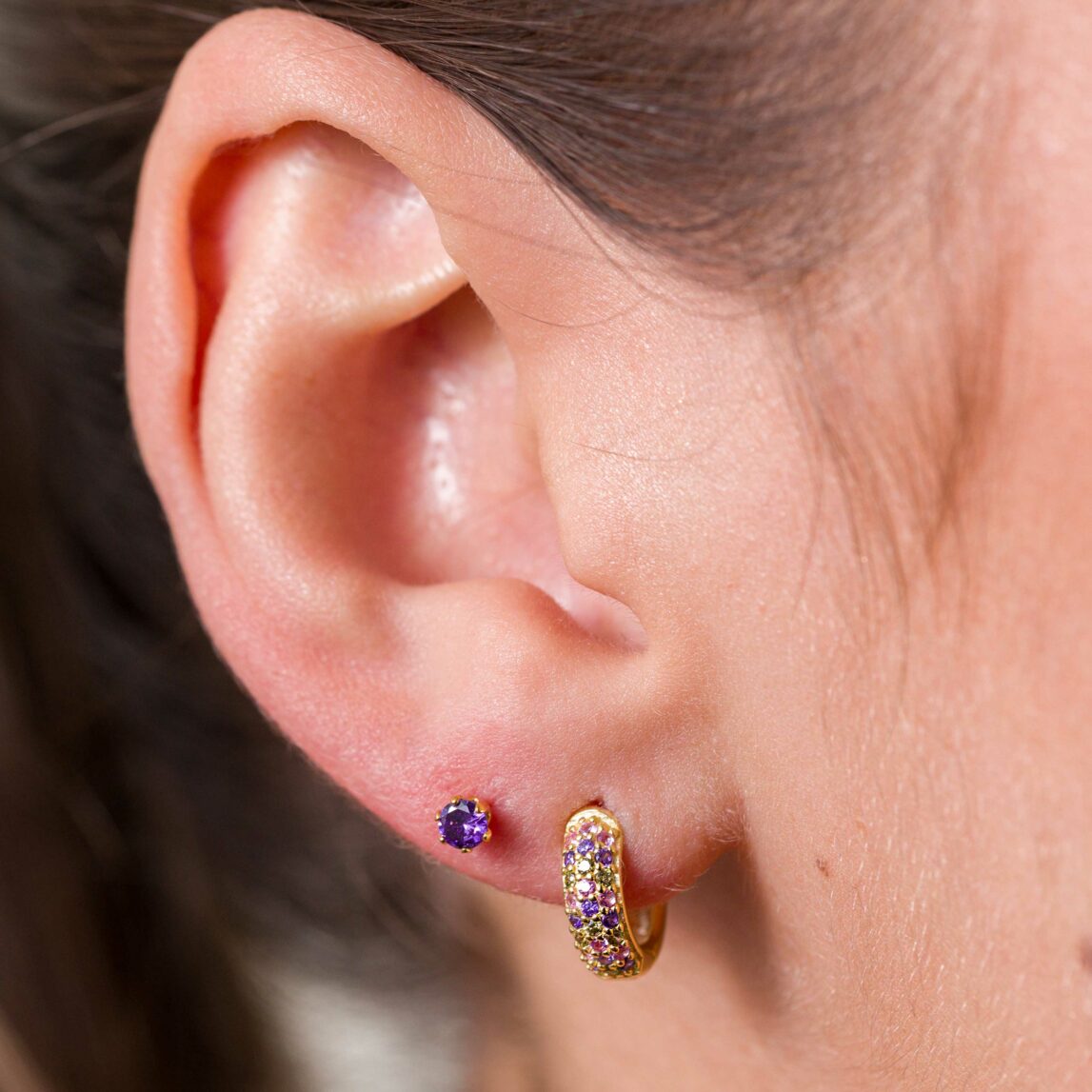 Puedes utilizarlo en tu día a día sin problema, pero debes intentar cuidarlo según las instrucciones de cuidado que explicamos en nuestra web y limpiarle el jabón que se le acumule cada cierto tiempo. Es ideal para combinar con el resto de mini pendientes y pendientes lila y malva que tenemos en Darwin.