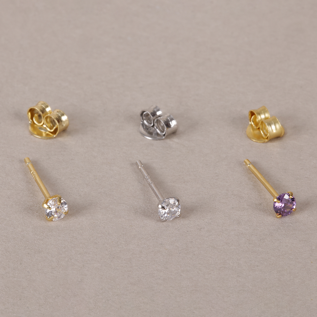 Mini pendiente de tornillo súper sencillo. Es una circonita pequeña redondeada, engarzada en la pieza del pendiente. Disponible en negro, malva y blanco.