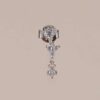 La pequeña flor en la parte superior con una cadena que cuelga agrega un toque encantador y coqueto. Con aproximadamente 1,4 cm de tamaño, este pendiente destaca por su sutileza y estilo. Todos los detalles están resaltados con circonitas blancas, añadiendo un toque de brillo que no pasará desapercibido.