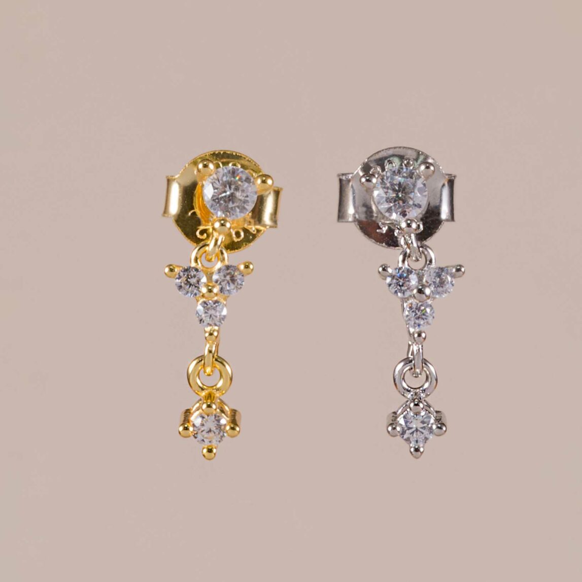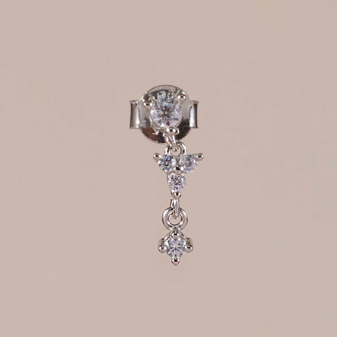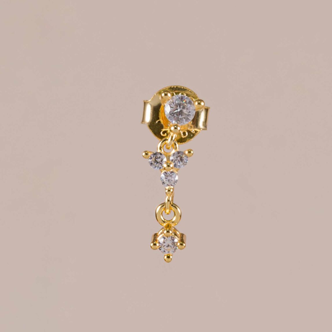 Este mini pendiente está arrasando, tiene una pequeña flor en la parte superior con una pequeña cadena que cuelga con una circonita.