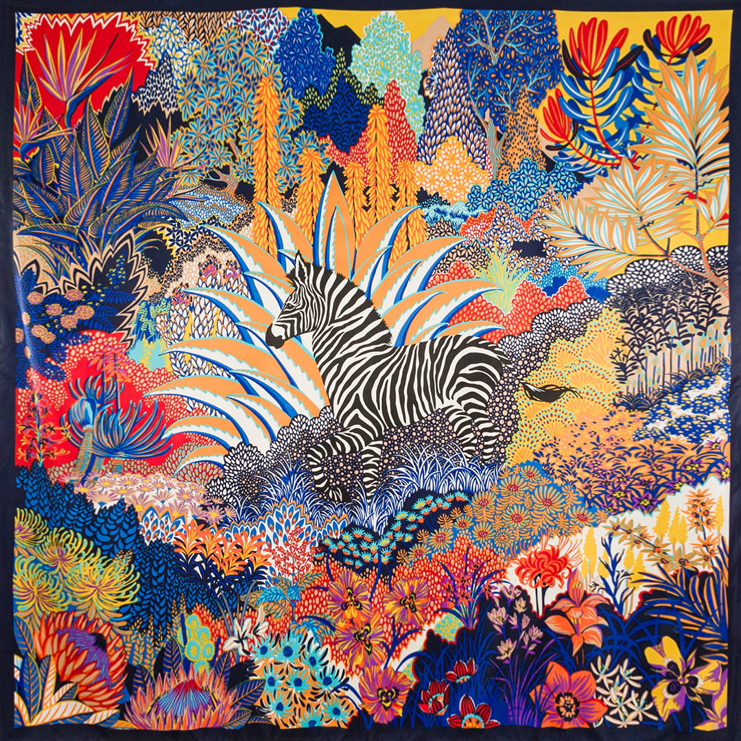 El Pañuelo Cebra azul es el accesorio que necesitas para darle un toque salvaje y chic a tus outfits. Con un estampado de cebra en la selva en tonos rojos y  verdes sobre fondo marfil, este pañuelo es una verdadera joya para cualquier amante de la moda.