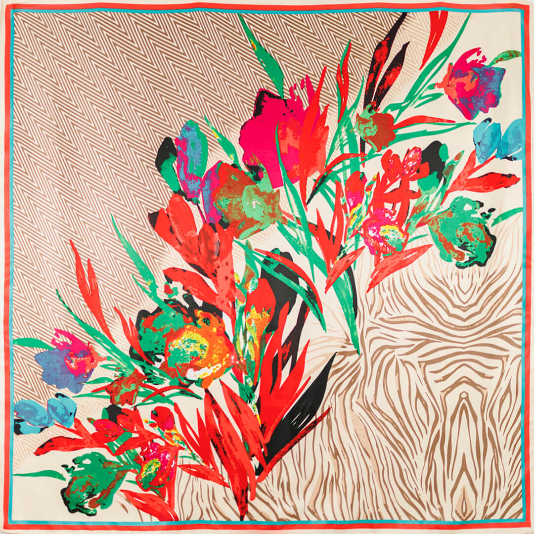 Y lo mejor es que el Pañuelo Zigzag Rosa tiene un estampado tan especial que lo hace todavía más versátil. Su base con dibujo geométrico en zigzag en tonos beige y blanco crea un fondo elegante, mientras que los toques en rosa vibrante y los motivos florales en colores vivos aportan energía y frescura. Es como tener un accesorio dos en uno: sofisticado y alegre al mismo tiempo.
