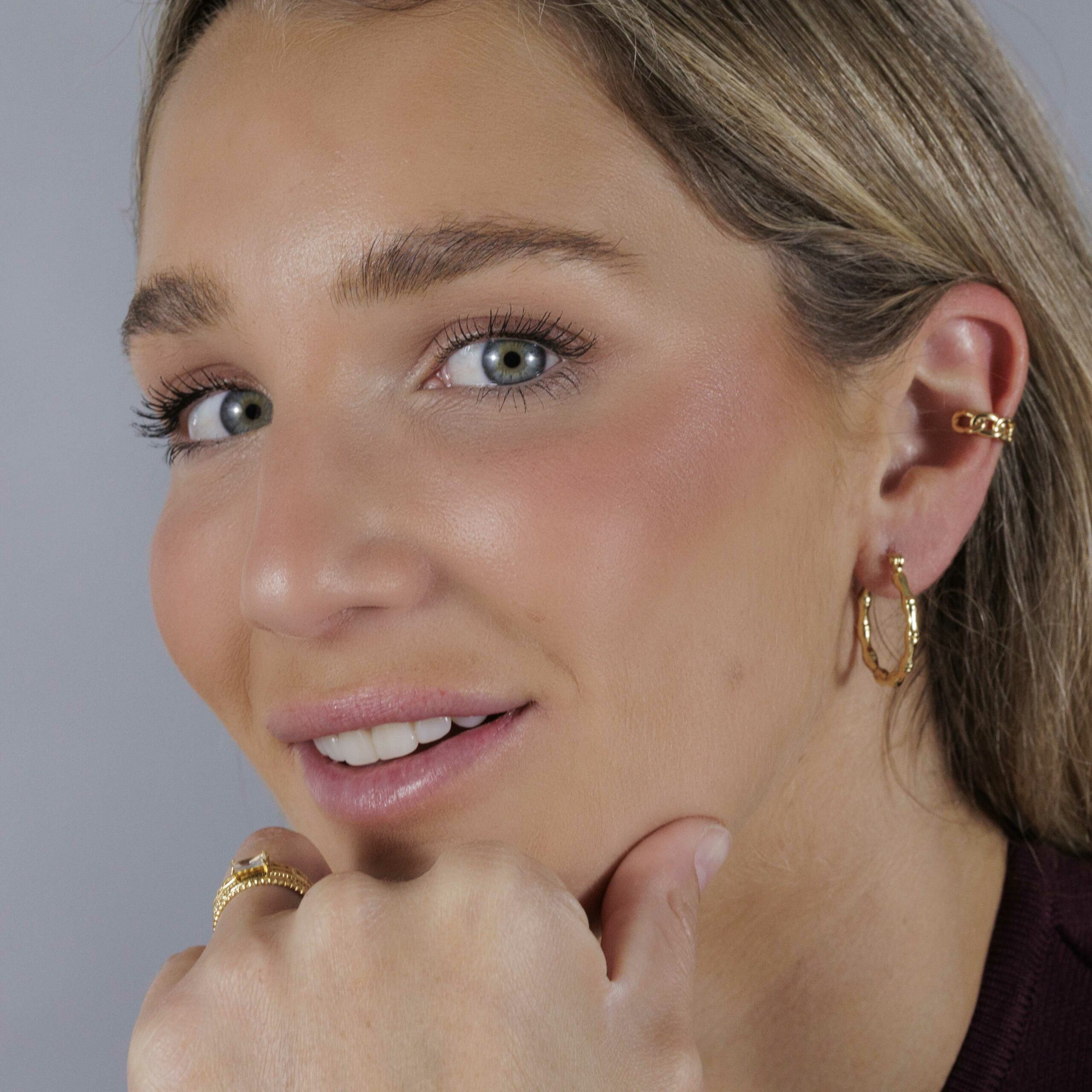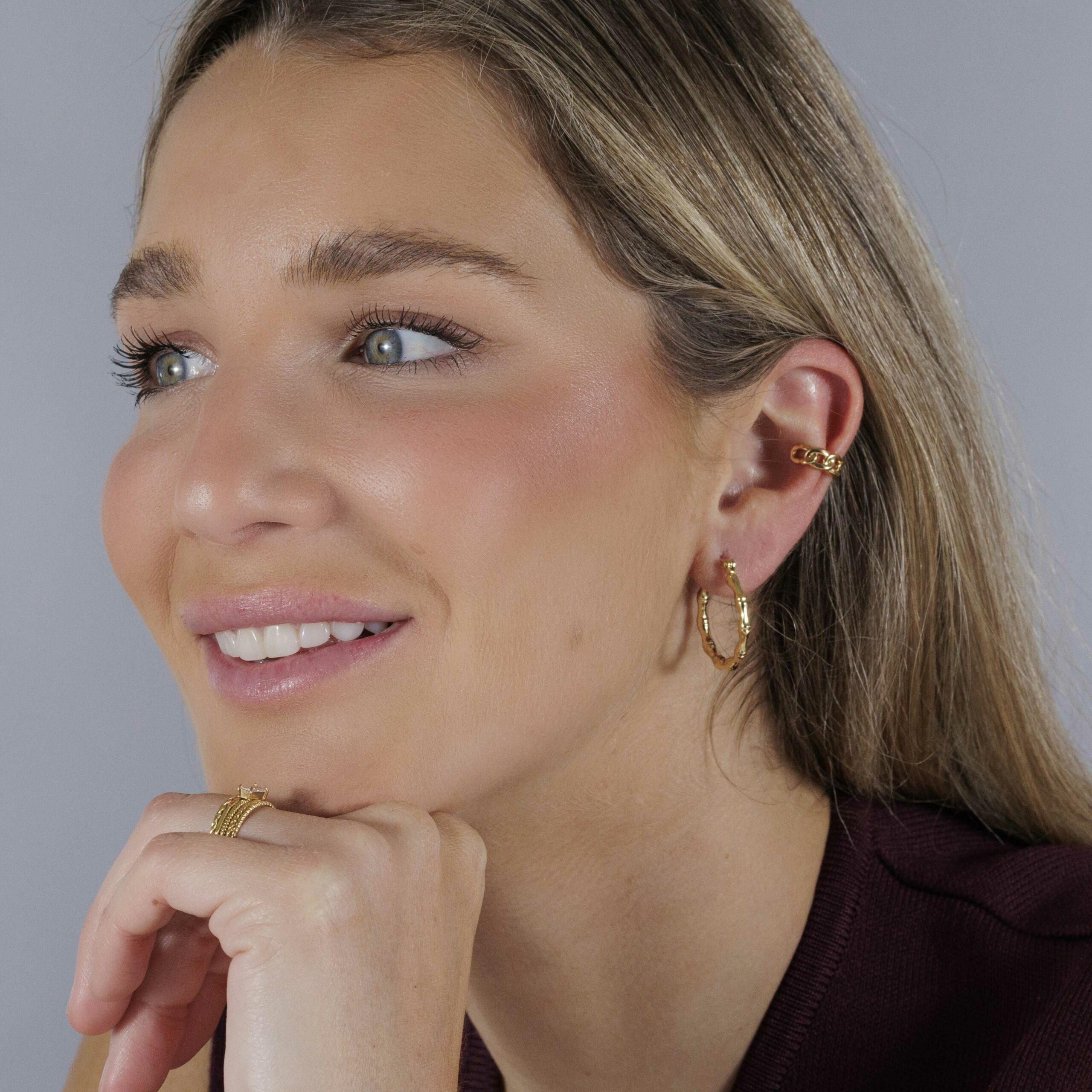 Los Pendientes Aro Bambú tienen un diseño inspirado en caña de bambú. Ideales para un look versátil, natural y con estilo.