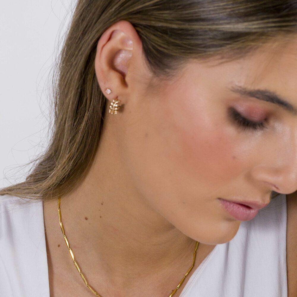 El diseño de hojas entrelazadas que rodea el aro aporta un aire natural y sofisticado que nunca pasa de moda. Quedan preciosos tanto con un vestido de invitada como con un look más casual, porque su estilo fresco y elegante se adapta a cualquier ocasión.