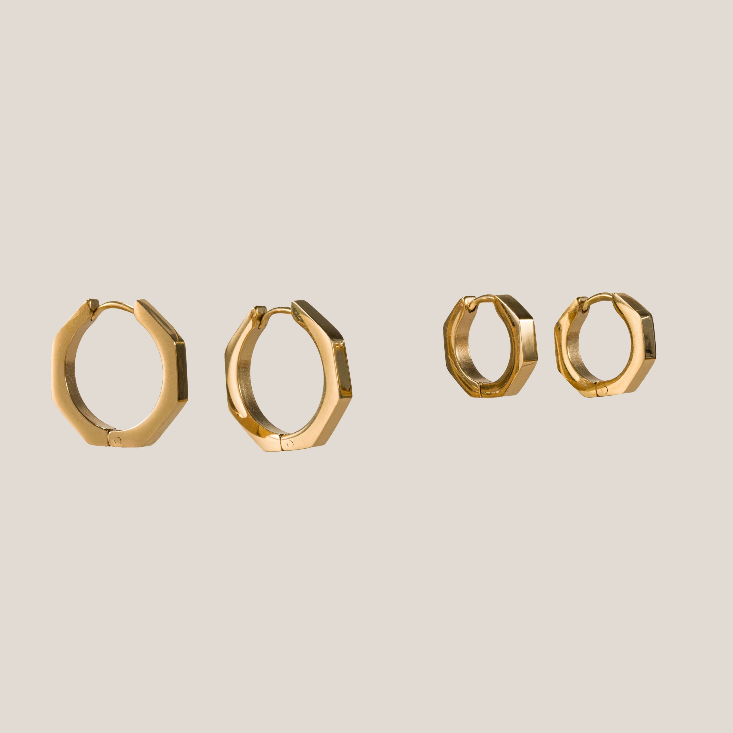 Los Pendientes Aro New York  con su diseño hexagonal de líneas rectas y geométricas, estos aros son el toque minimalista que necesitas para destacar en cualquier ocasión.