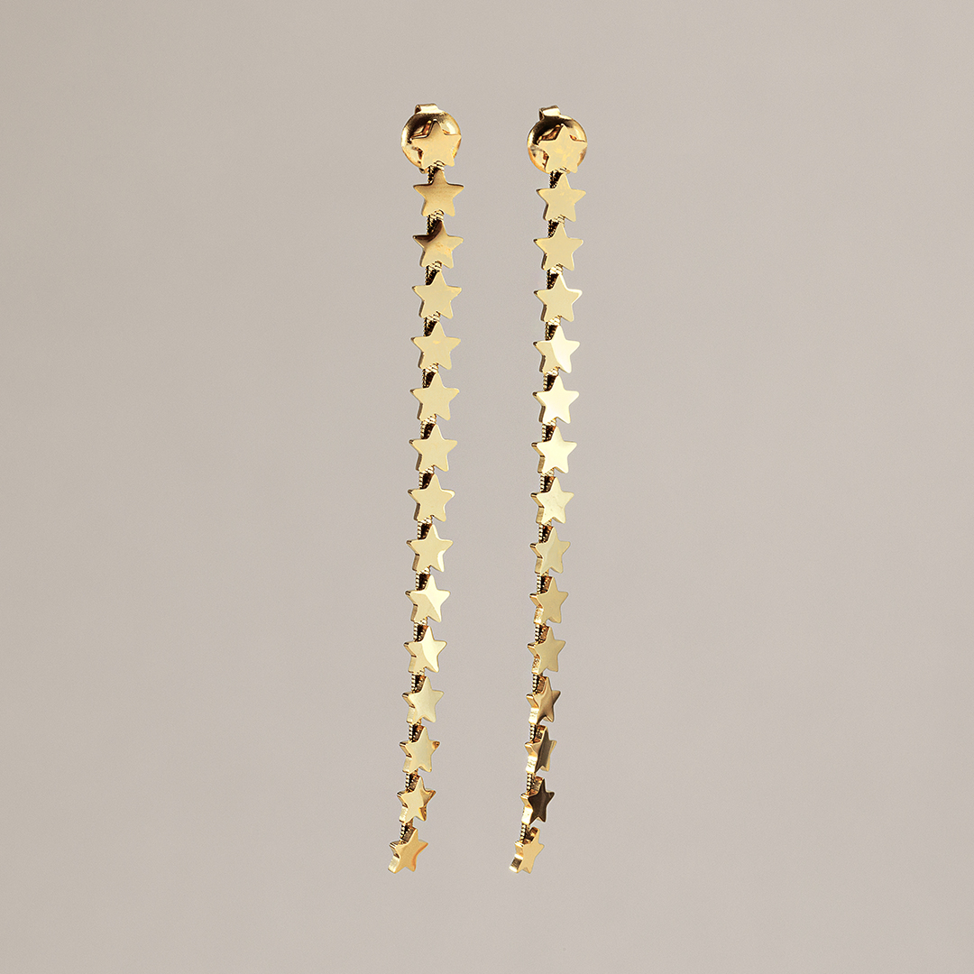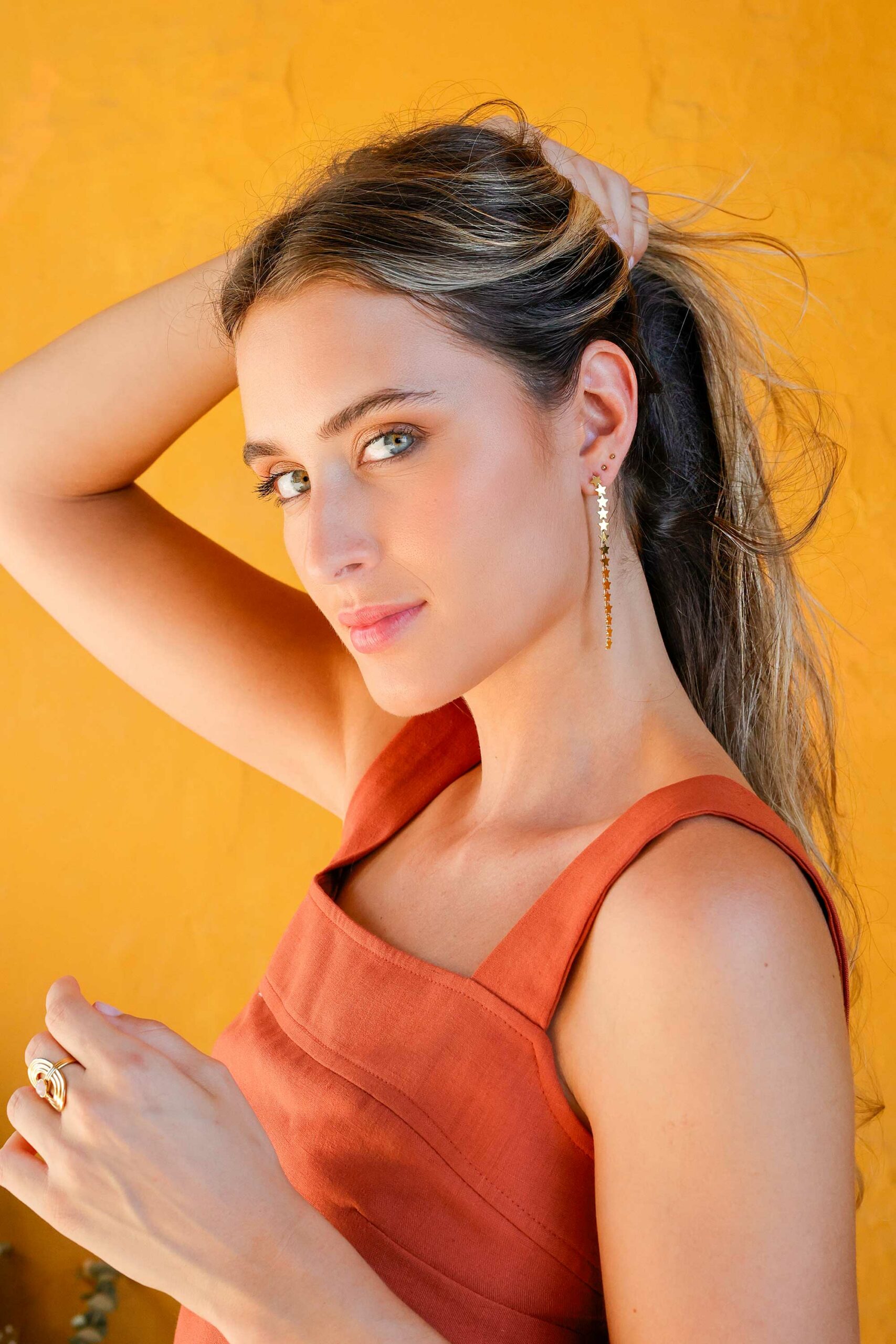 Te presentamos los Pendientes Caritina, una joya que fusiona elegancia y estilo boho en un solo diseño. Estos pendientes largos con cierre de mariposa están formados por pequeñas estrellas de 5 puntas, unidas por detrás por una fina barra trenzada. ¡El detalle perfecto para darle a tu look ese toque especial que estabas buscando!