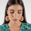 El diseño de los Pendientes Chiara no pasa desapercibido. En la parte superior, tienen un rombo en color negro del que cuelga un óvalo en tono hueso, y en su interior, un óvalo más pequeño en color mostaza. Están hechos de cuerno de búfalo, lo que no solo les da un aspecto único, sino que también los hace ligeros y cómodos de llevar, a pesar de su tamaño.
