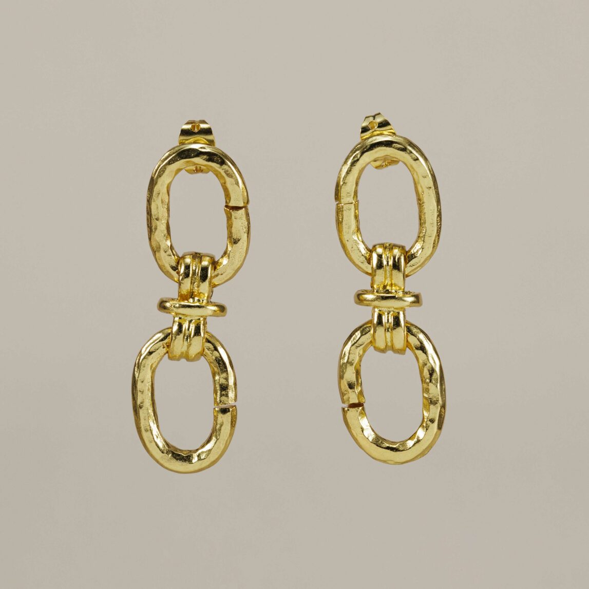 Diseño elegante con dos aros ovalados entrelazados, en Plata 925 con baño de oro de 18k. Ligeros, cómodos y súper versátiles: perfectos para el día a día o eventos especiales. Llévalos con el Brazalete Giovanni y crea el combo ideal.