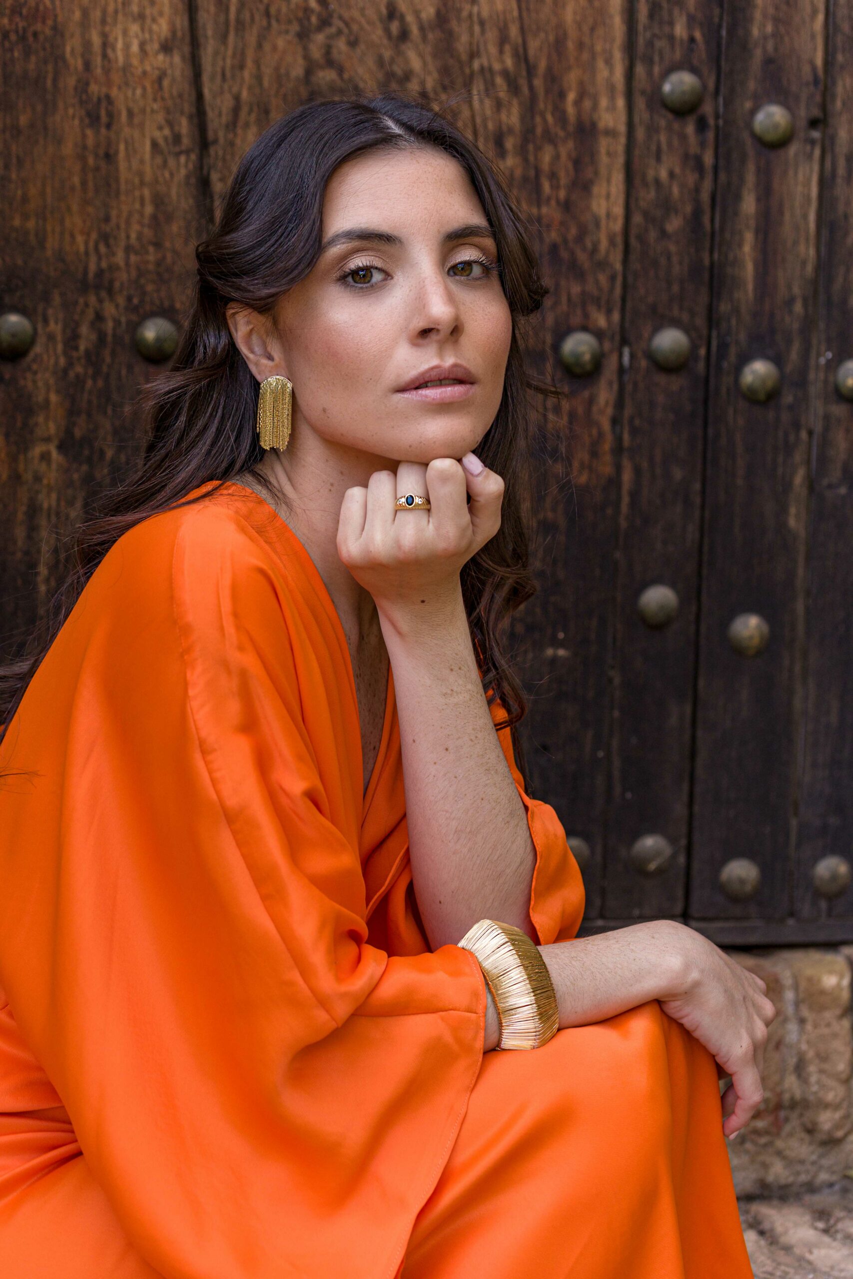 El diseño de hilos dorados de los pendientes Mercia es espectacular, y su longitud media enmarca y realza tu rostro con un brillo dorado muy favorecedor. Además, su ligereza significa que puedes llevarlos durante todo el día sin sentir incomodidad, lo que los convierte en el accesorio perfecto para cualquier evento, desde una boda hasta una cena elegante.