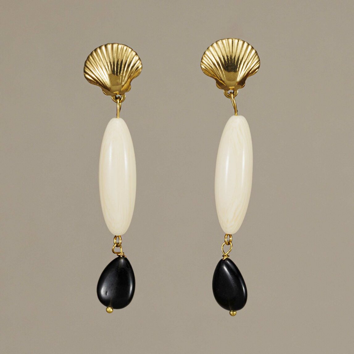 Los Pendientes Hueso Baras combinan un cierre en acero con forma de concha, una esfera alargada en resina color hueso y una piedra natural que aporta un toque único. Con una longitud de 6.5 cm, ofrecen un diseño sencillo, elegante y perfecto para cualquier ocasión.