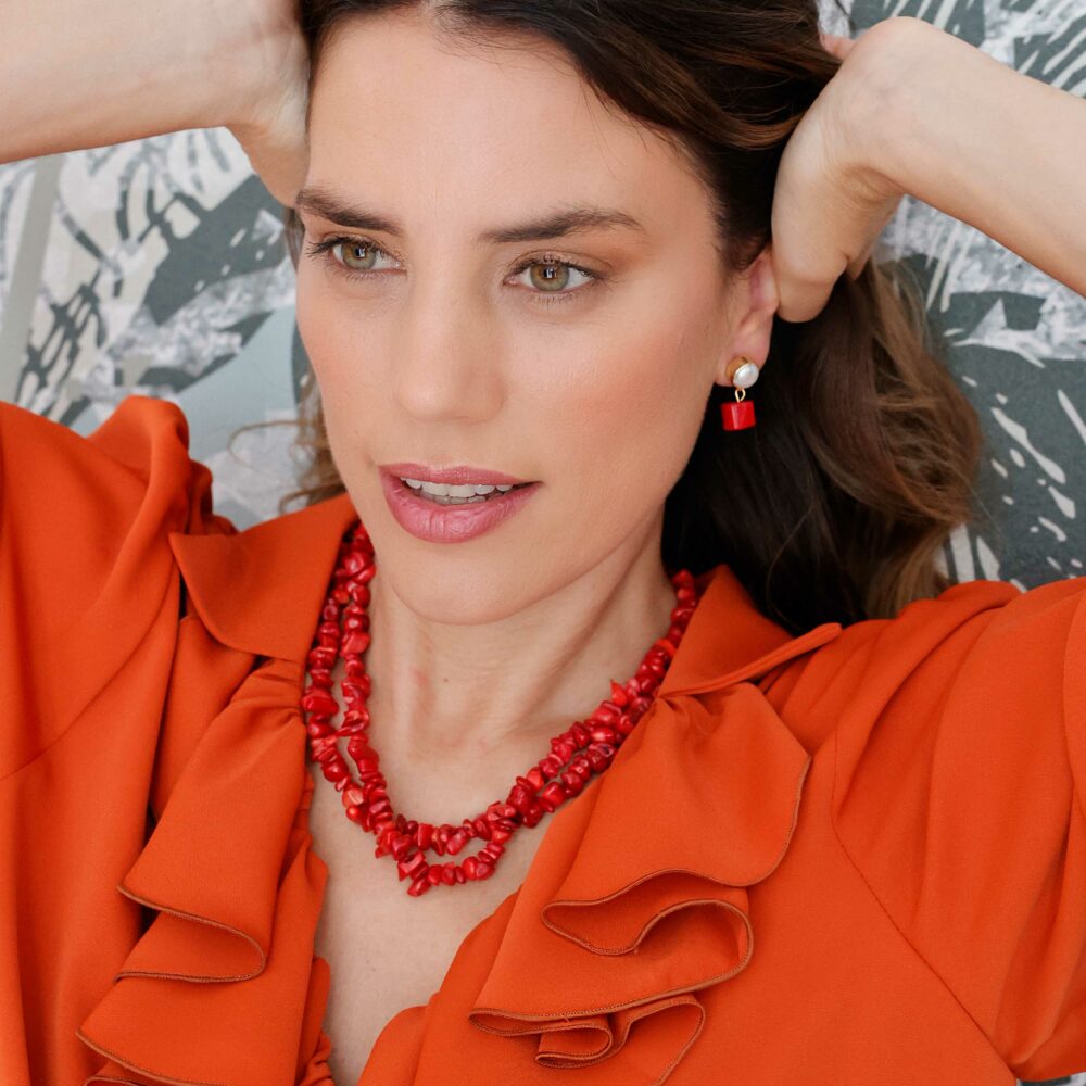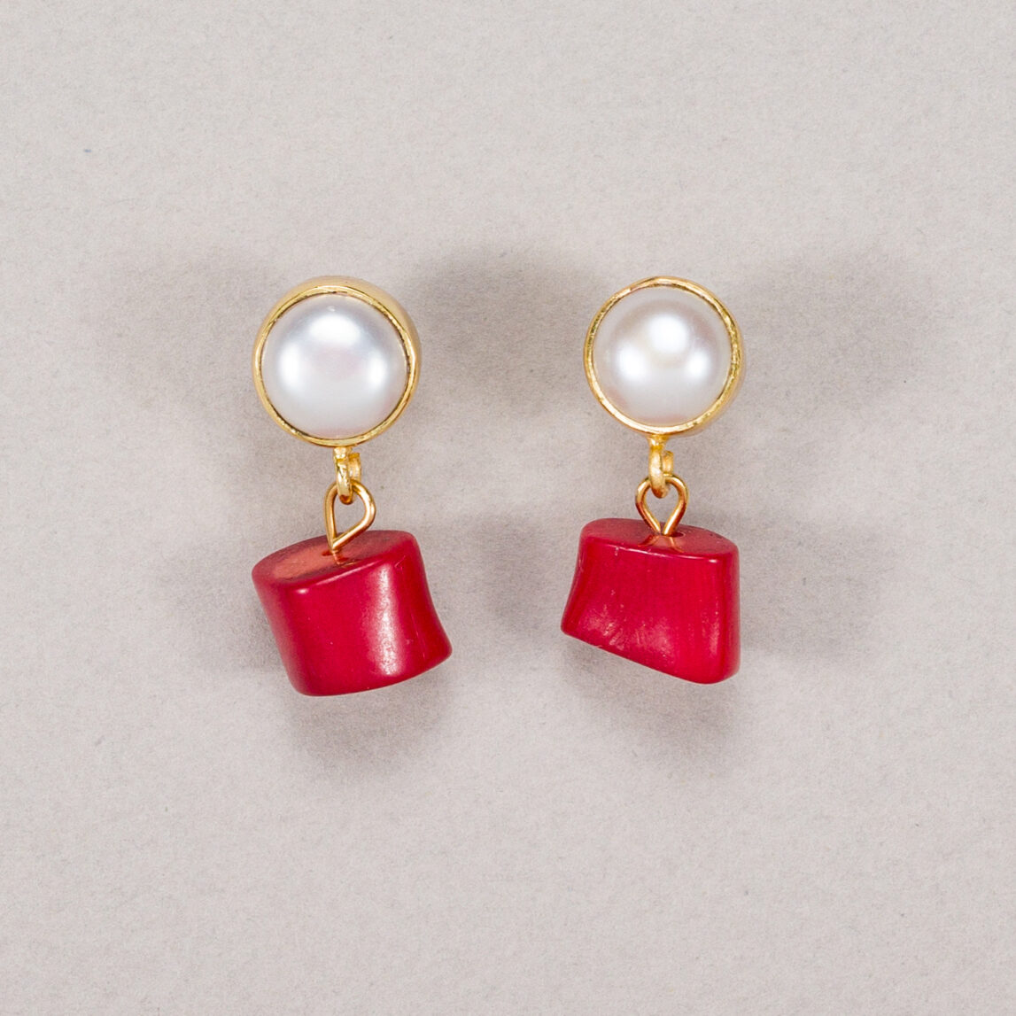 Cada pendiente cuenta con una auténtica perla natural, símbolo de pureza y elegancia atemporal, cuidadosamente rodeada por plata con baño de oro, que añade un brillo cálido y sofisticado. En la parte inferior, una delicada raíz de coral completa el diseño, aportando un toque orgánico y único que convierte a cada par en una obra de arte exclusiva.