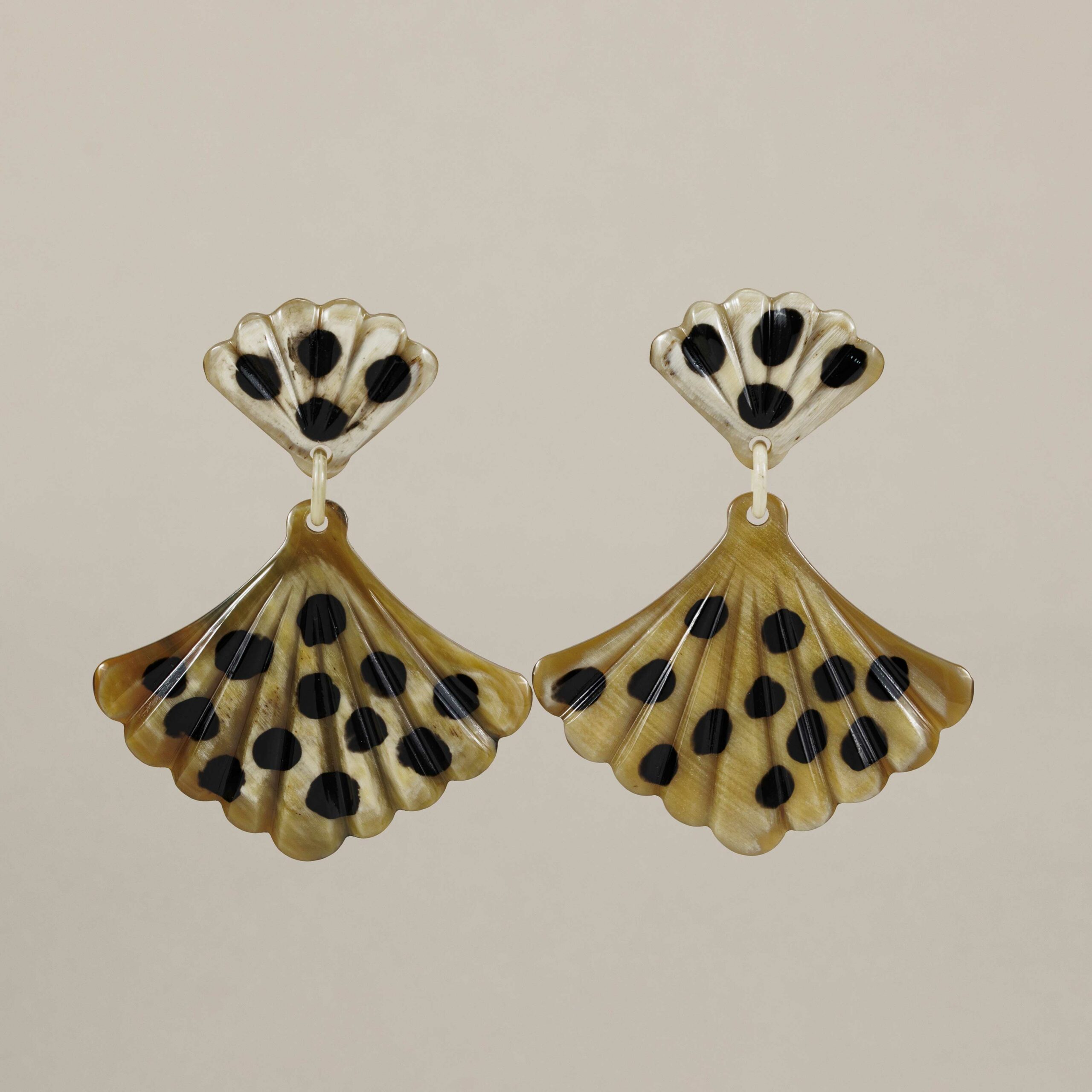 Nuestros Pendientes Matilde, el nuevo diseño de la Colección de Invitada de Darwin Collection. Estos pendientes están hechos artesanalmente en Italia con cuerno y hueso.