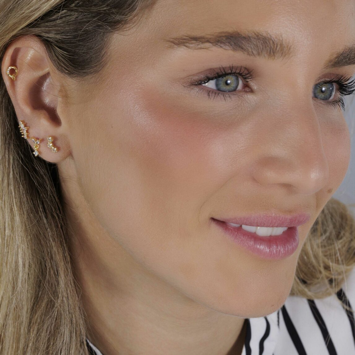 Ahora, si quieres elevar tu estilo, prueba a combinarlo con otros mini pendientes. Imagina un look con el Mini  Aro Mila en el primer agujero, el Mini  Aro Petite París en el segundo y este piercing de circonitas en el tercero. ¡Es una combinación irresistible que atraerá todas las miradas!