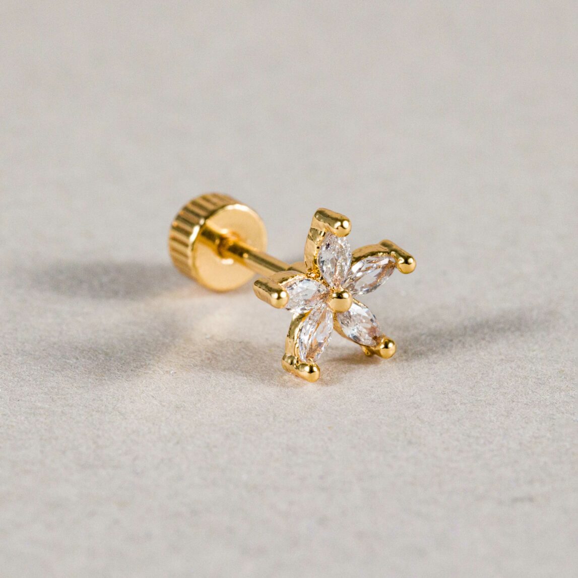 Mini Piercing Flor – Un pétalo de brillo en tu oreja