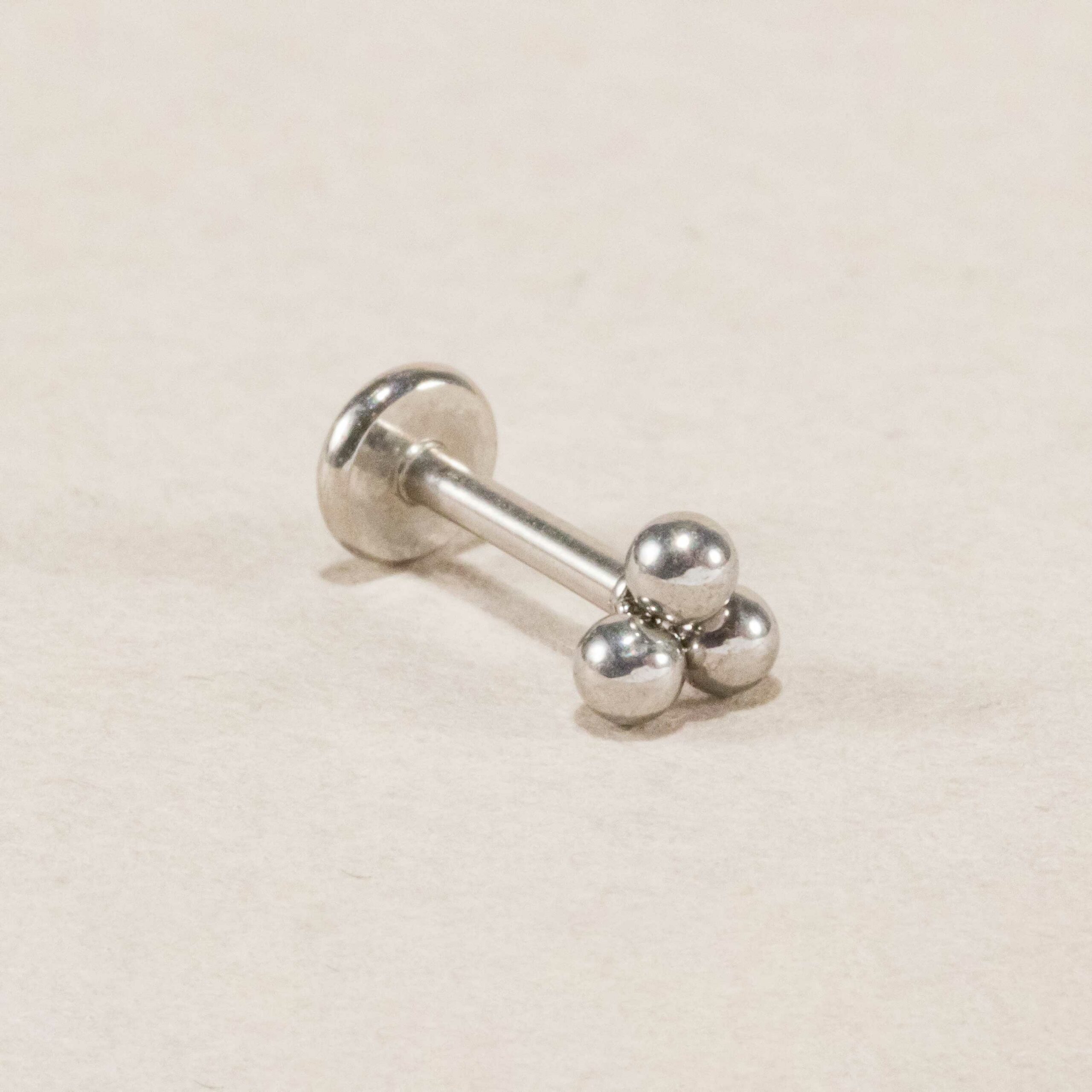 Su diseño limpio y contemporáneo destaca por tres pequeñas bolitas que aportan volumen y textura sin sobrecargar. Ideal para llevar en el segundo o tercer agujero, en el hélix o tragus, este mini pendiente es el complemento perfecto para crear combinaciones versátiles y elegantes.