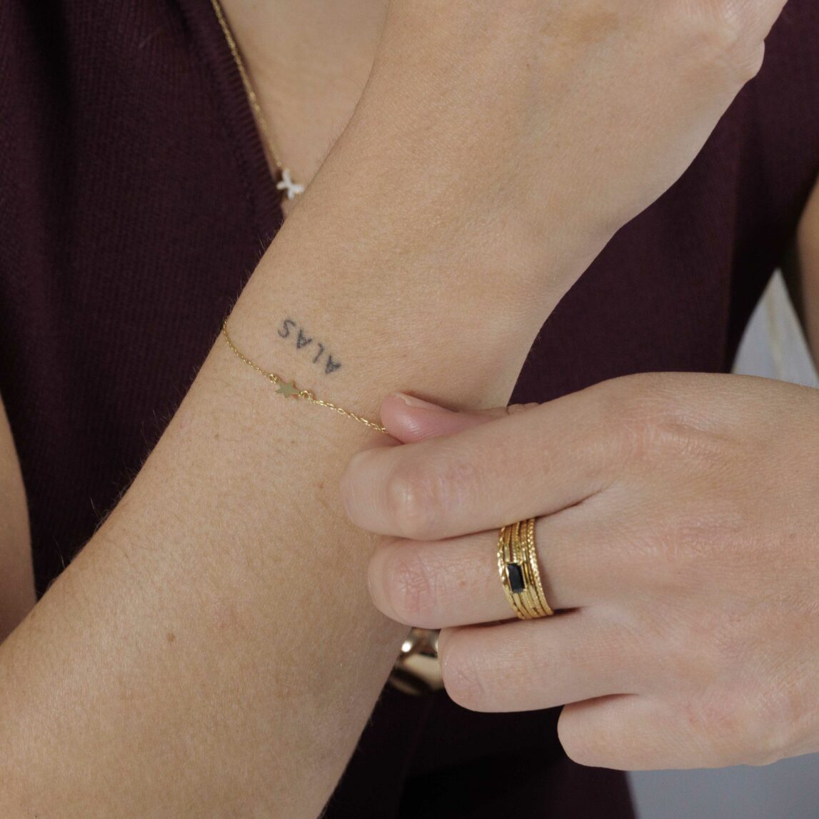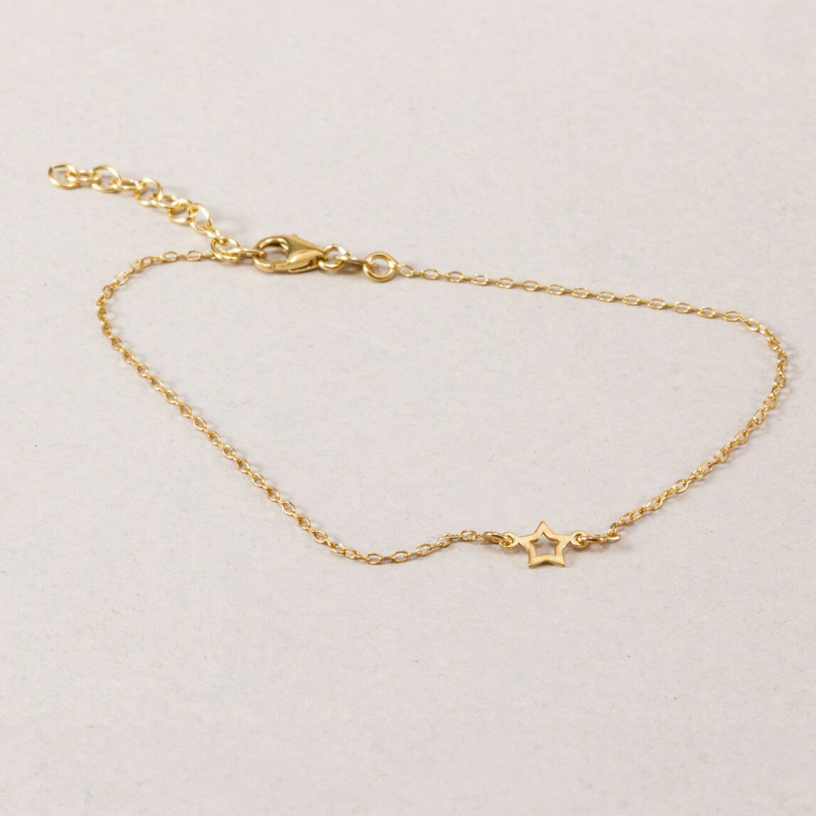 El detalle de esta pulsera está en su delicada cadena de eslabones finos que en el centro lleva una estrella, ideal para brillar en cualquier momento del día. Además, puedes elegir entre tres modelos únicos que se adaptan a tu estilo: estrella calada, estrella redonda o estrella plana.