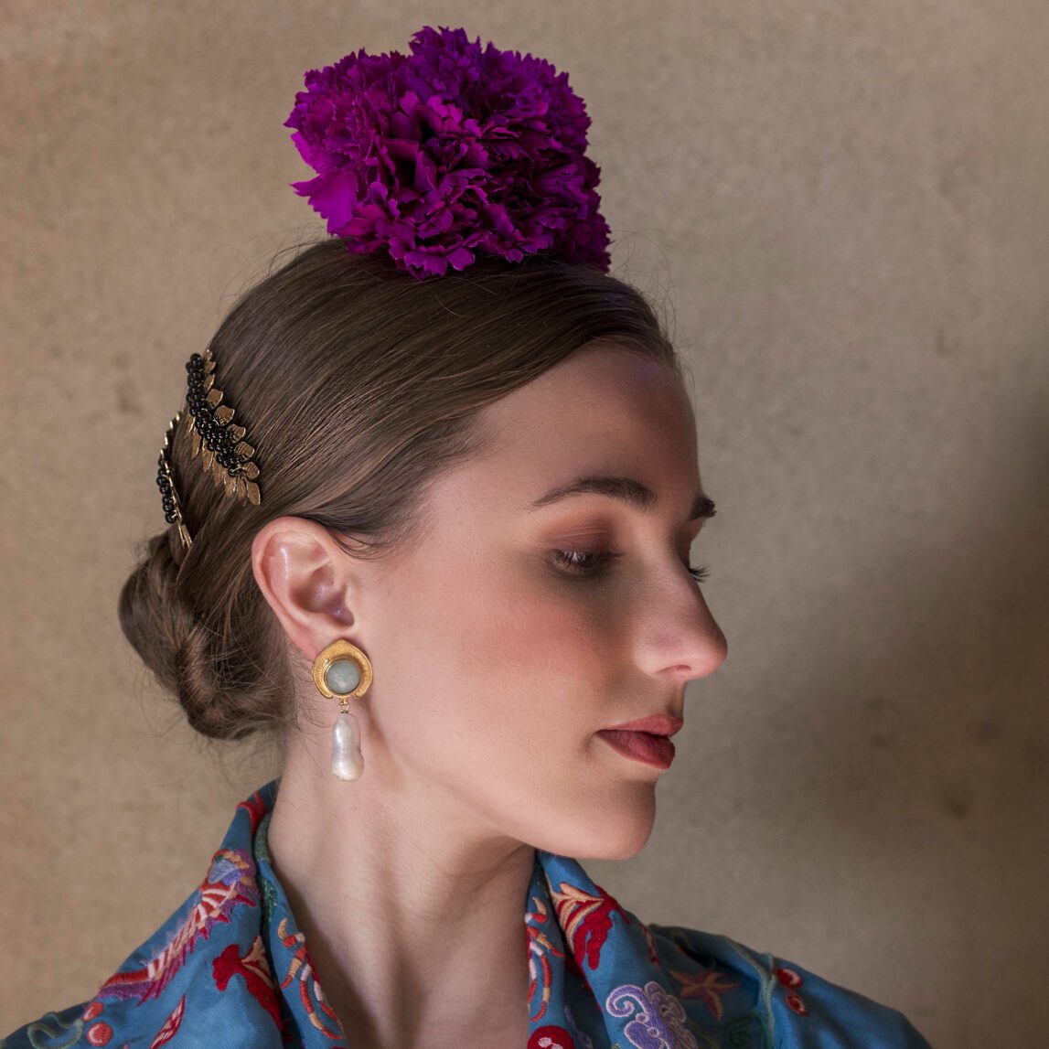 Imagina completar tu moño, recogido o trenza de espiga con una de nuestras hermosas flores de gitana. ¡Será el toque final que necesitas para brillar como una estrella en la feria!